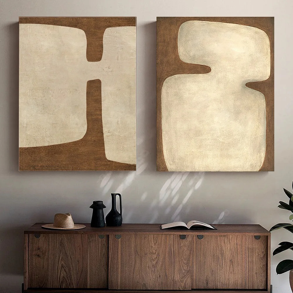 100% Handpainted Abstract Brown Geometric Mid Century Minimalist hotel room artwork handmade modern abstract wall art painting