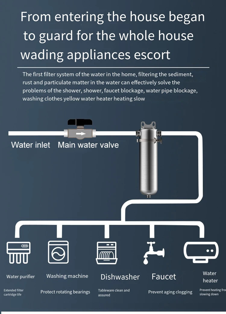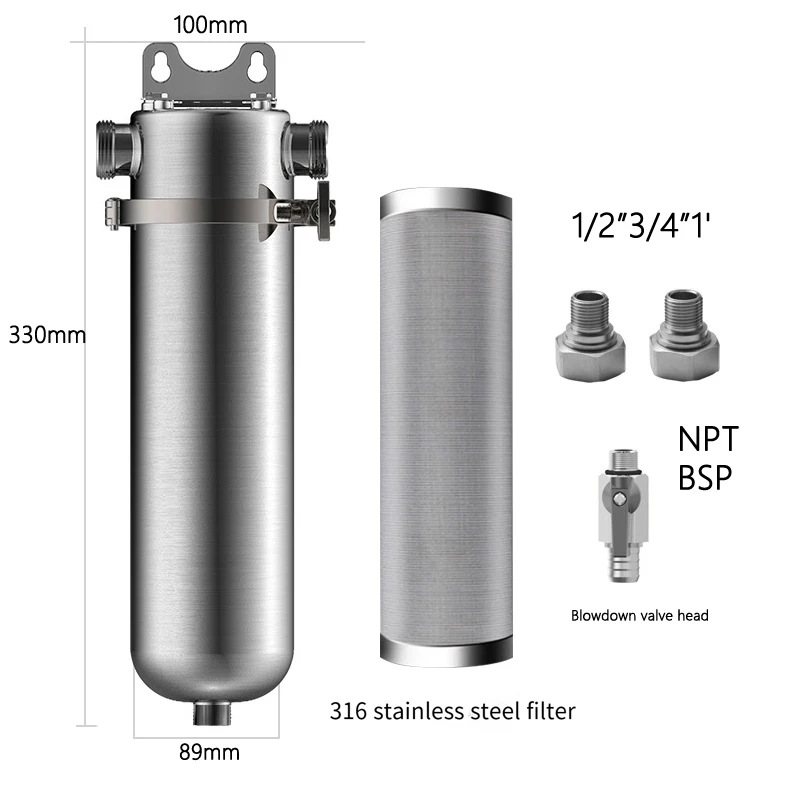 8000l/h 5″ 10″ 20″ 304/316 Stainless Steel Housing Liquid Treatment System Prefilter Water Filter Household Outdoor Use