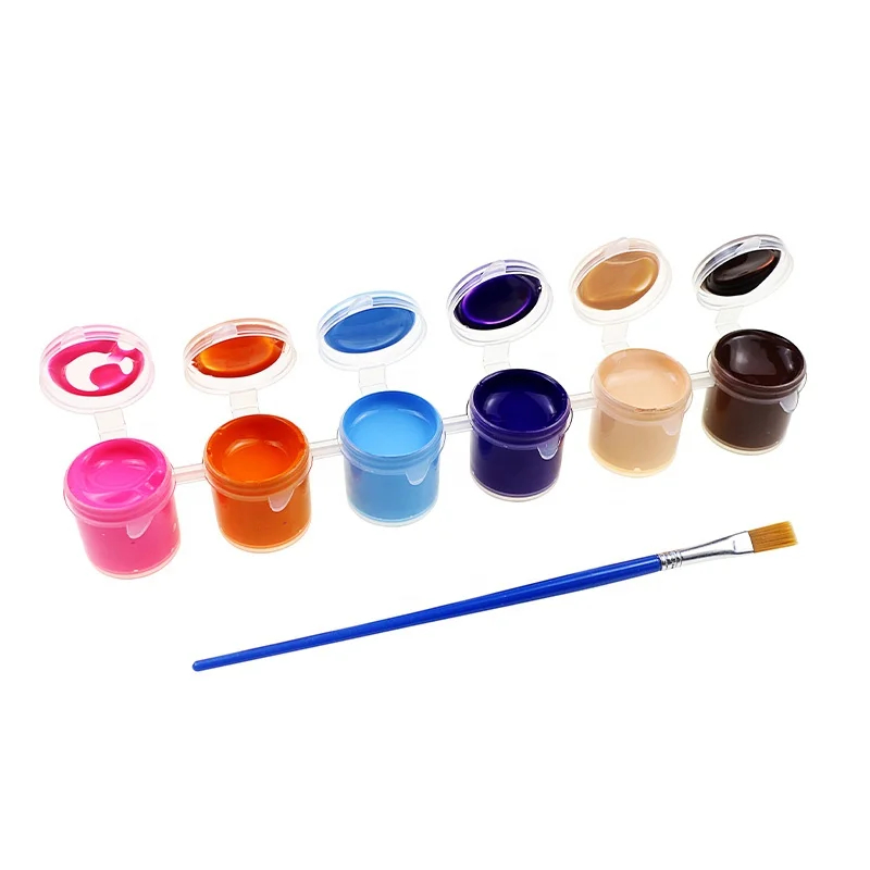 BECOL Promotional Professional 10ml*6 Colors Art Paint Pot Strips Non Toxic Dry Quick Acrylic Paint Set with Brush for Kids