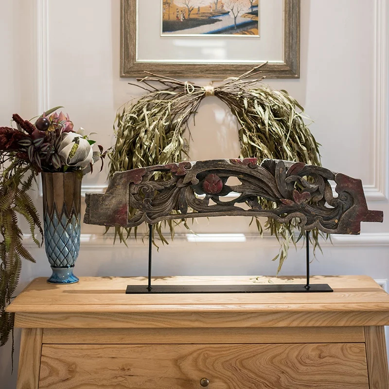 Classical pattern furnishings classical wood carvings antique vintage decorative table top Entrance