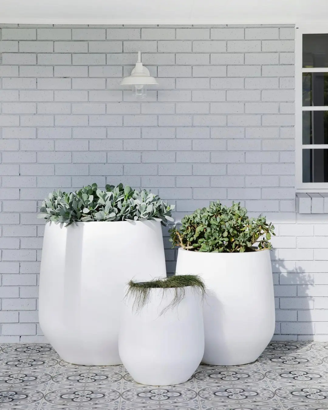 Custom succulent smooth paint plastic white fiberglass pots and planter vase large wholesale flower garden outdoor