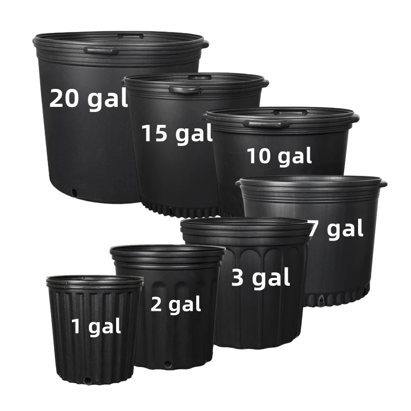 Durable 1 2 3 5 7 10 15 20 25 Gallon Large Garden Black Plastic Nursery Flower Pots Planter