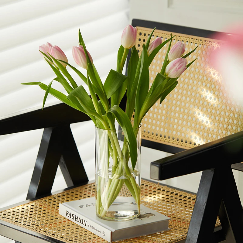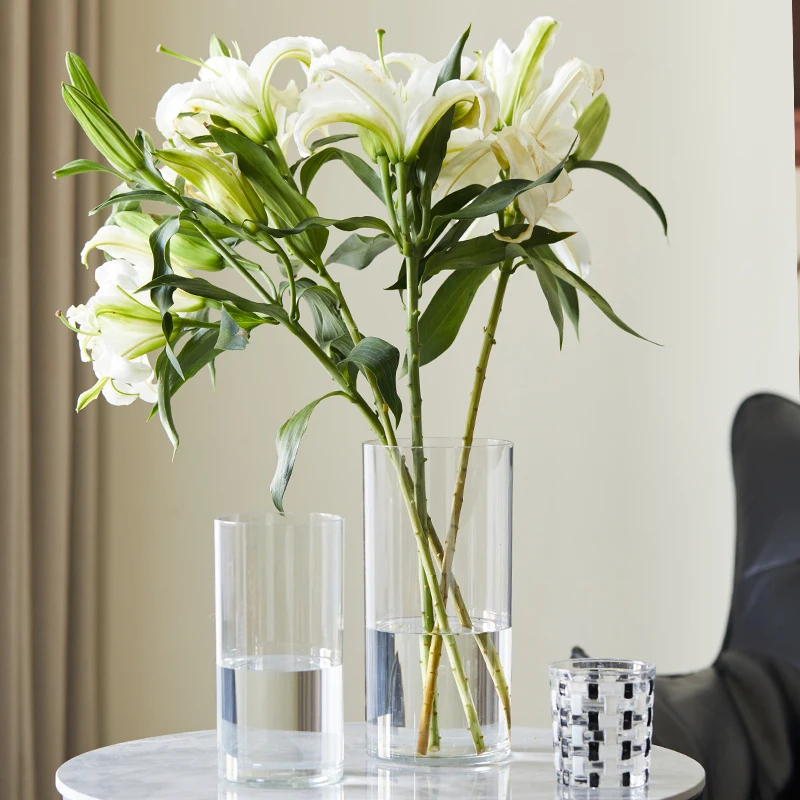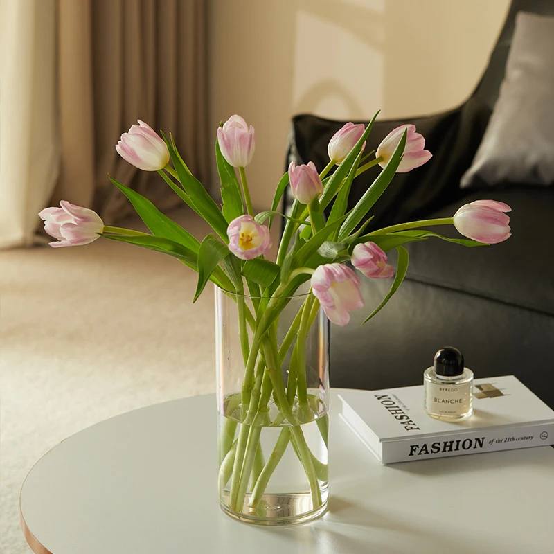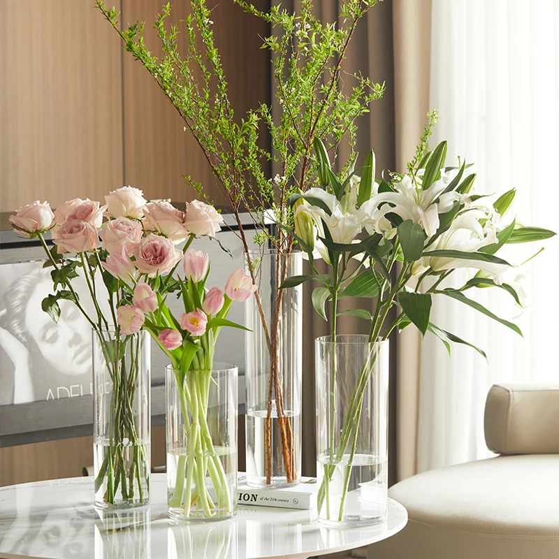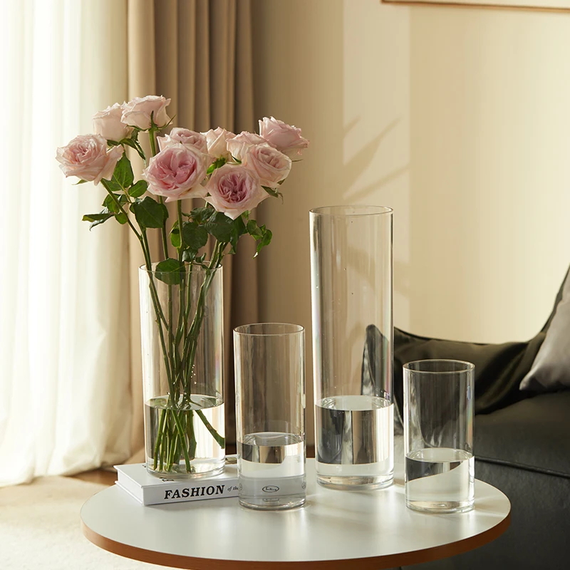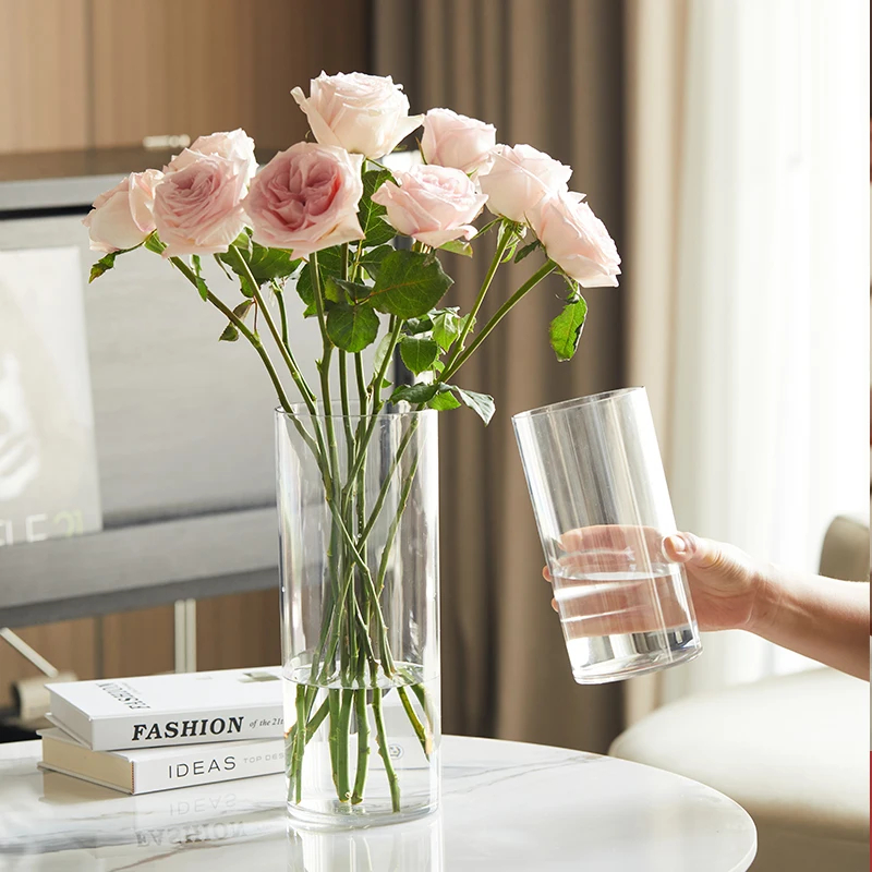 Factory Directly Sale Cheap Tall 15 inch 40cm high PET Plastic Glass Similar Cylinder Floor Vase for Flowers Bouquet Arrangement