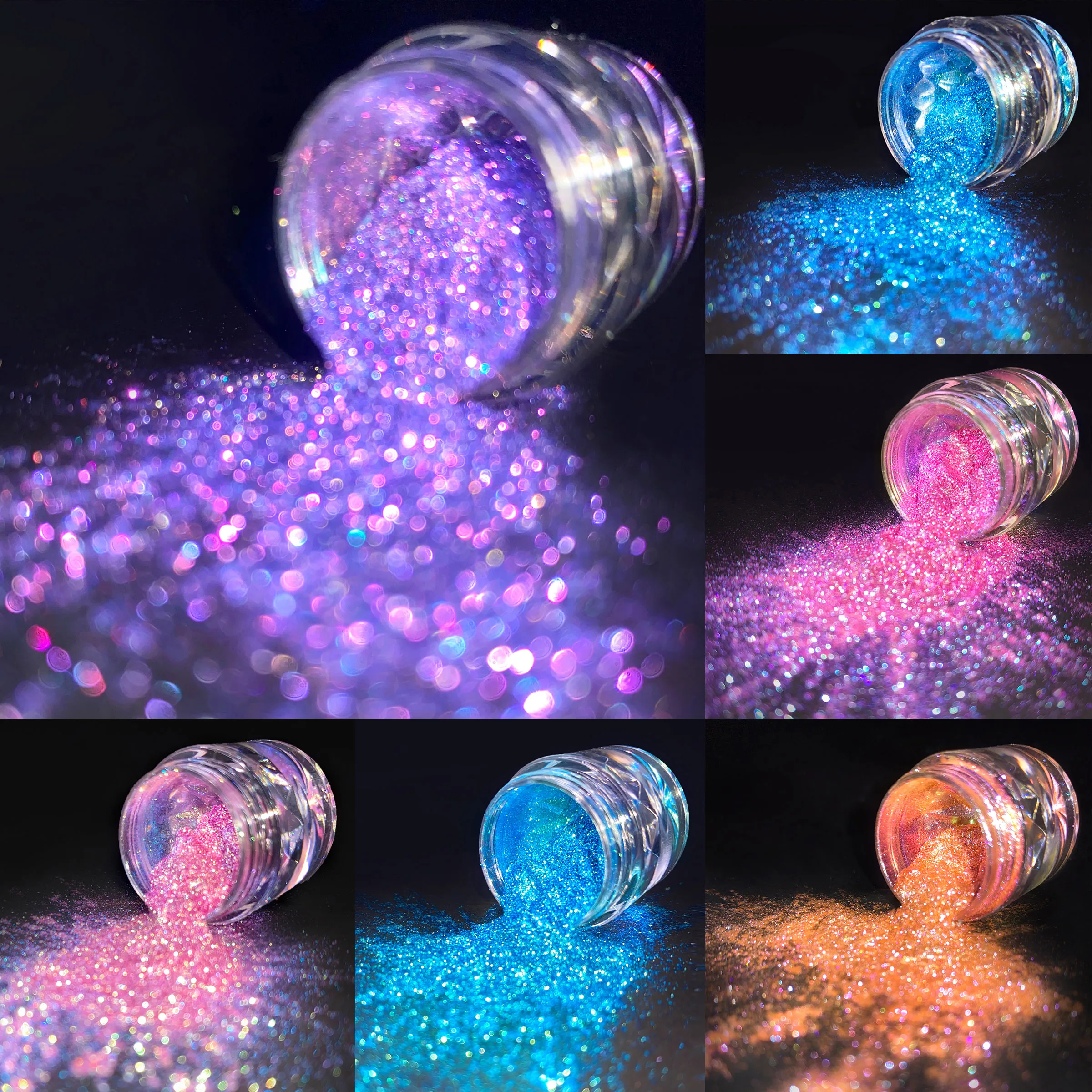Low MOQ Wholesale Rainbow Mica Holographic Eyeshadow Pigment Multi Chrome Color Change Pigment Powder for Nail , Body Glitter