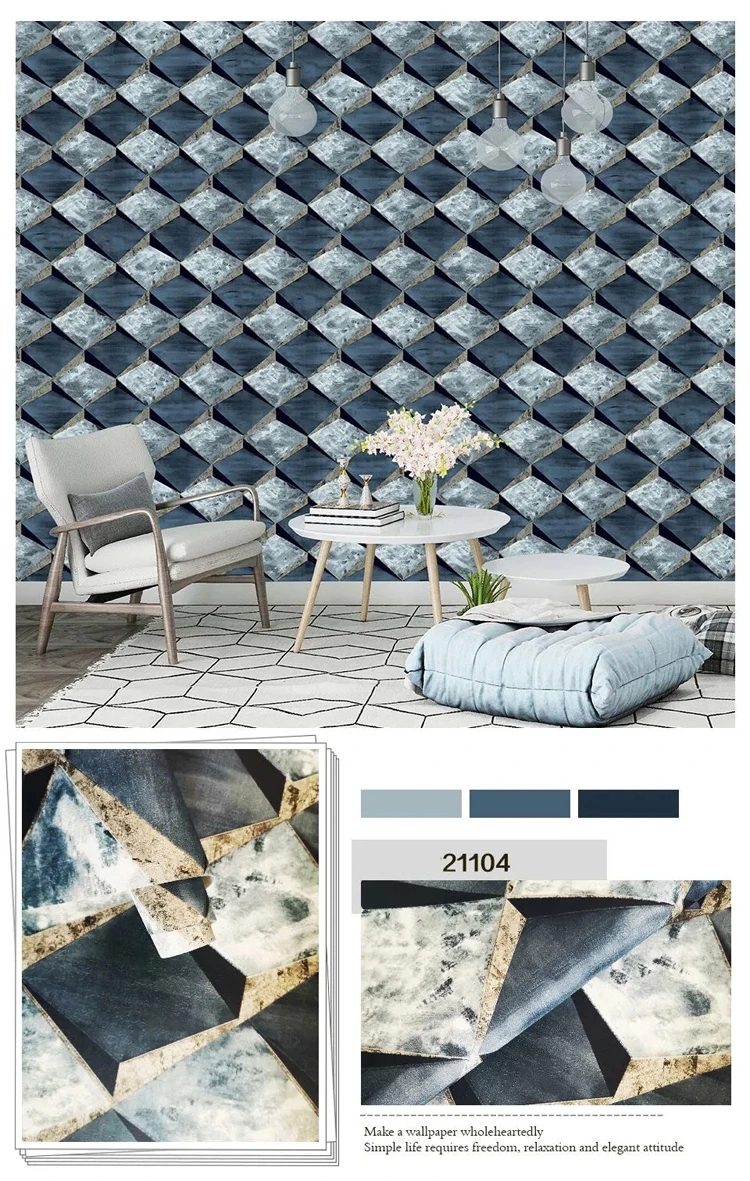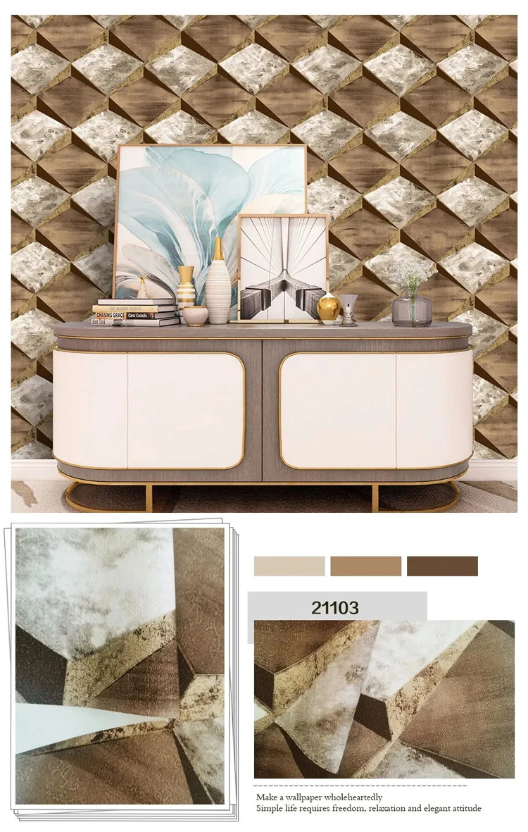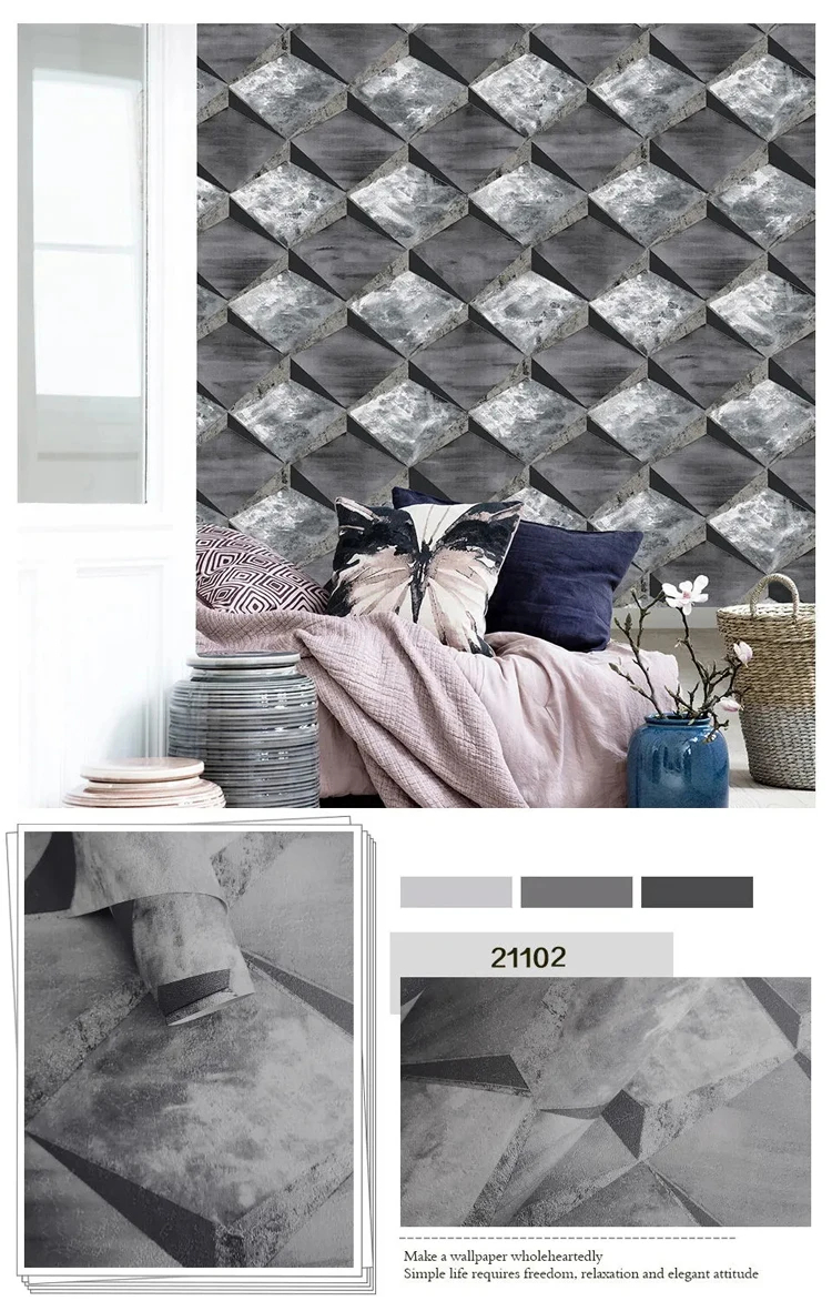 Modern abstract 3d geometric pattern PVC wallpaper home decoration brushing water Self adhesive wallpaper