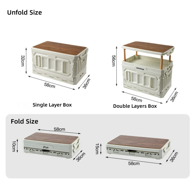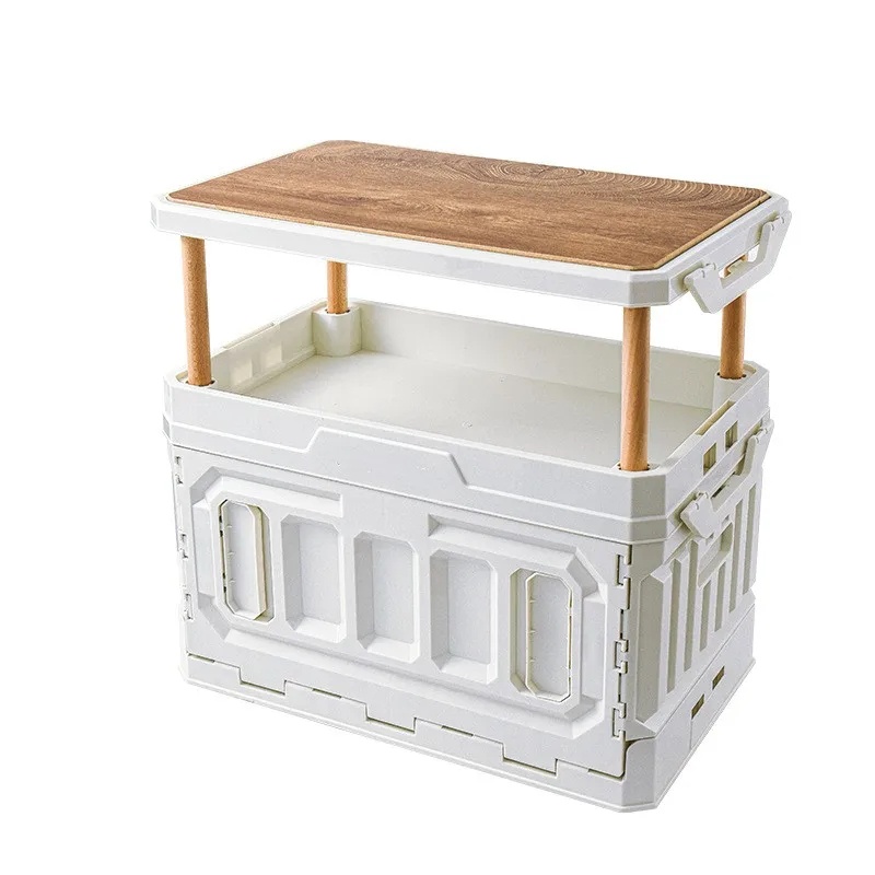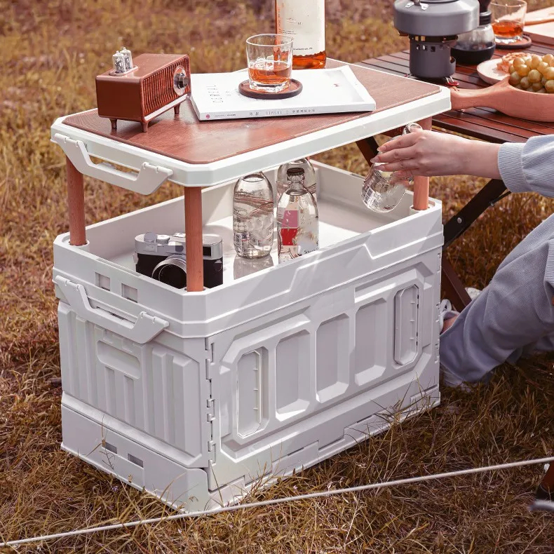 Outdoor Indoor 95L Folding Storage Bin Foldable Plastic Storage Box with Lift-able Tabletop