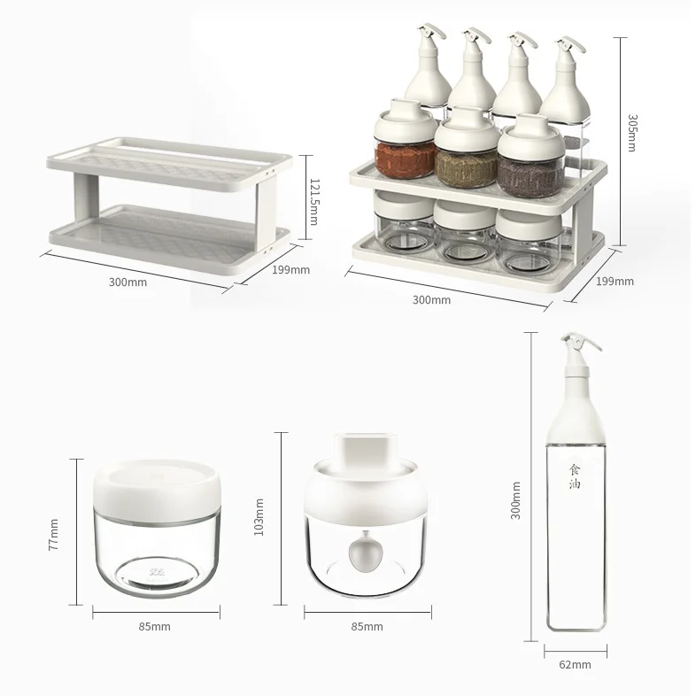 Seasoning Containers Oil Dispensers with Kitchen Countertop Rack Holder Set of 11 Pcs, Ingredients Canister Tools kit