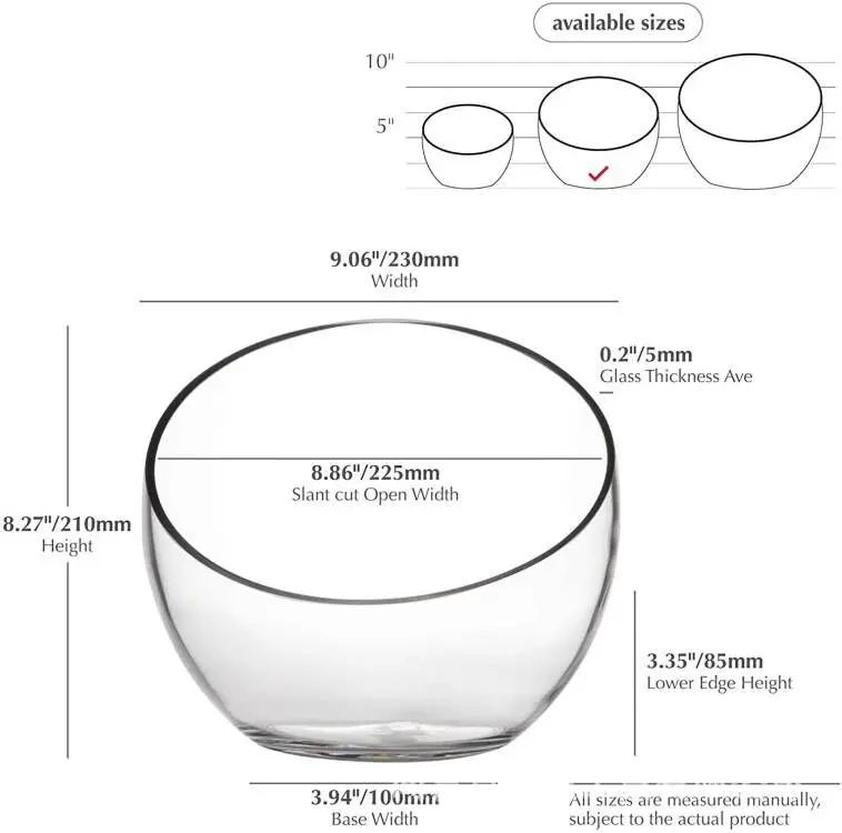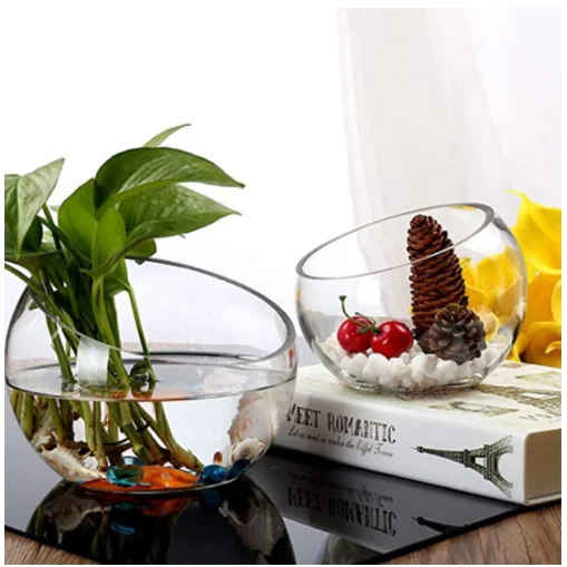 Slant Cut Bowl Glass vase clear thicken glass plants Terrarium Candy Dish Fruit Jar Floral Container for home wedding wholesale
