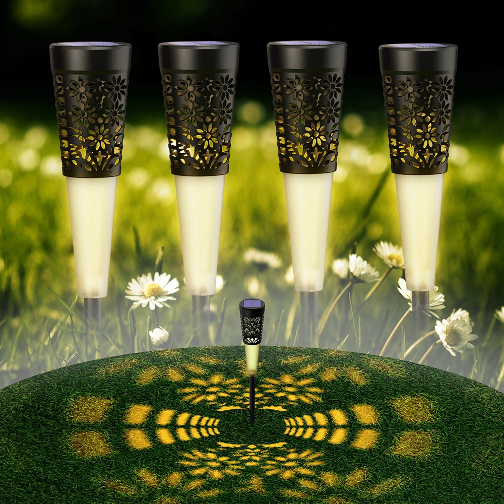 Waterproof LED Outdoor Solar Lamp Lighting Decoration Hollow Out Flower Landscape Lights Ground Garden Lawn Solar Pathway Light