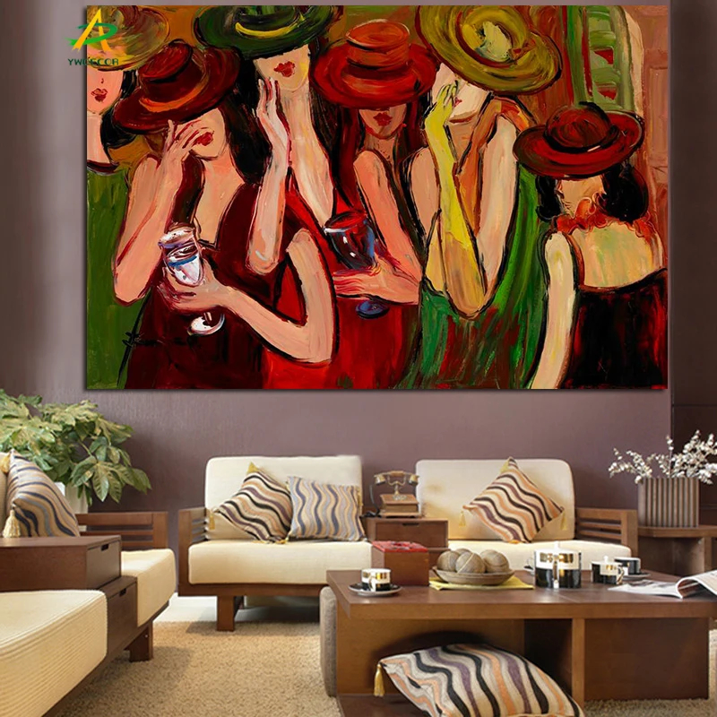 Wholesale custom modern art printed canvas abstract female oil painting for room decoration